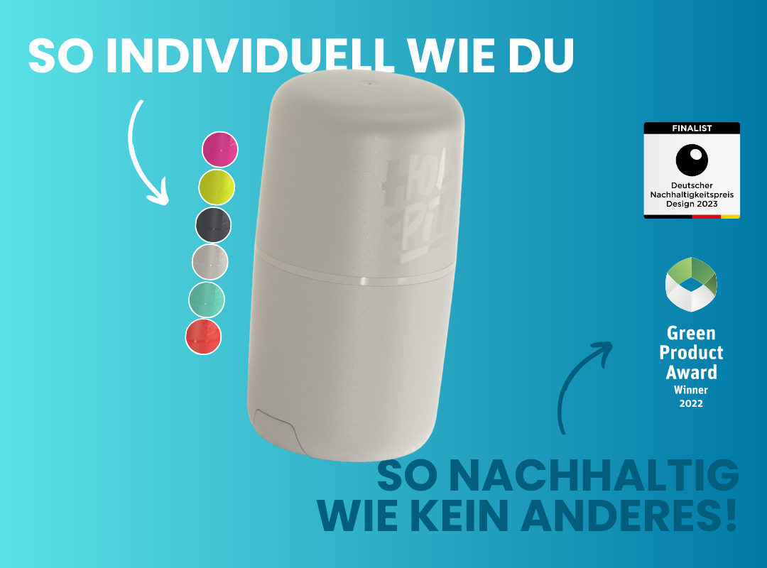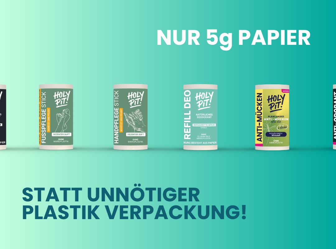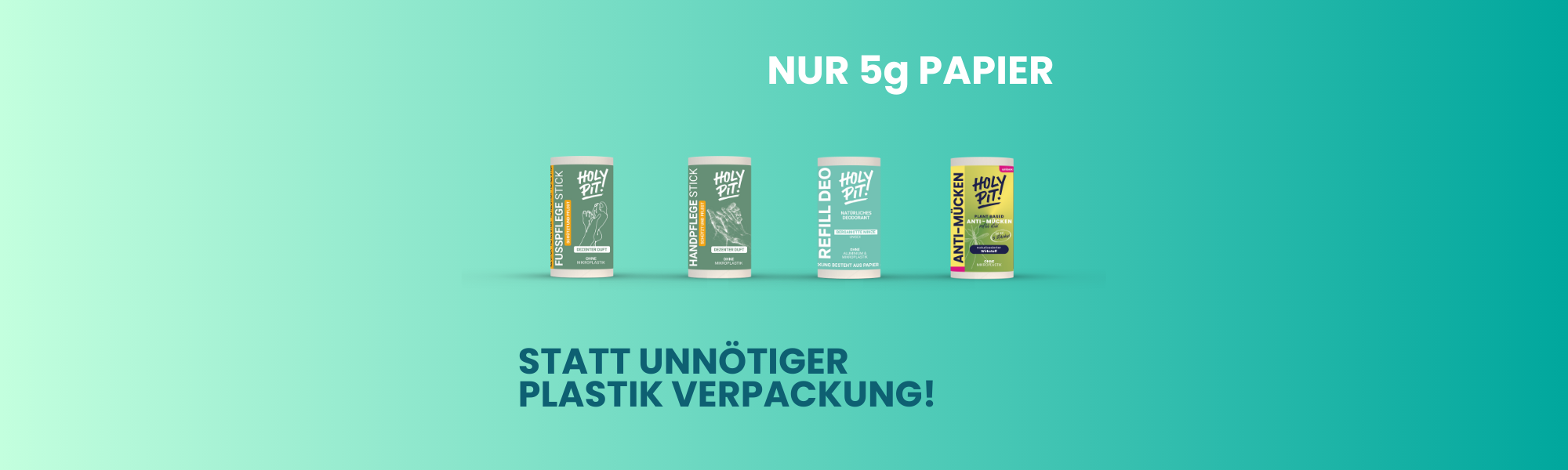 Du willst Plastikmüll vermeiden und Gutes bewirken? Dann ist unser Case aus recyceltem Plastik genau richtig für dich. Du kannst es immer wieder mit Körperpflege Sticks in Nachfüllpackungen aus Papier befüllen. Am Ende bleiben nur 5 g Papier übrig - Nachhaltigkeit im Alltag kann so einfach sein. Egal, ob nachfüllbares Deo, Mückenschutz oder Sonnenschutz - mit dem HOLY PIT System machst du die Welt ein Stück nachhaltiger. 🌍