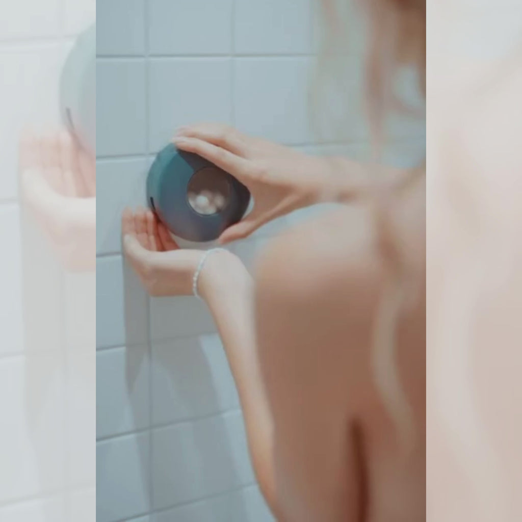 - Befestige den turn mit dem wasserfesten Klebestreifen an einer möglichst trockenen Stelle in deiner Dusche.