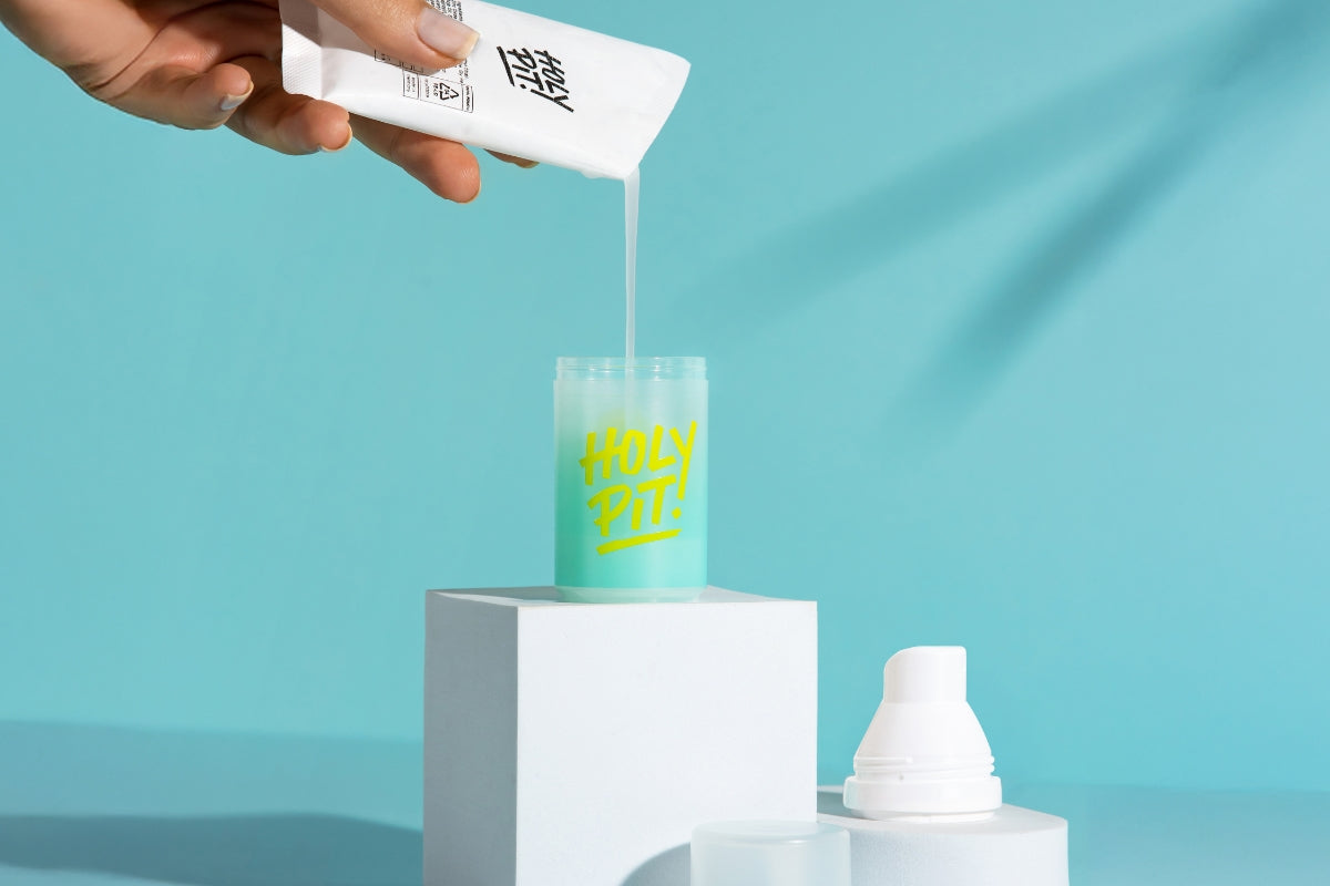 Wir setzen auf eine hochwertigere Formulierung: Im Vergleich zu herkömmlichen Bodysprays enthält unser HOLY PIT BODY BREEZE pflegende und feuchtigkeitsspendende Inhaltsstoffe, die gut für die Hautpflege sind. Zusätzlich kommt es ohne Silikone, Parabene und Mikroplastik aus. Außerdem ist es nachfüllbar und du kannst eine Menge Plastikmüll reduzieren.